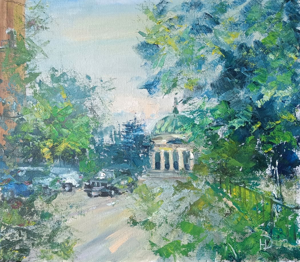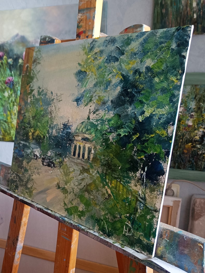 Художник не ставил цель нарисовать открытку с достопримечательностью. Здесь важнее ощущение — лёгкости, воздуха, приятного настроения. Кажется, что вот-вот почувствуешь аромат цветущих деревьев и услышишь шелест листвы. Картина словно приглашает пройти по тенистой аллее, замедлиться, выдохнуть.
