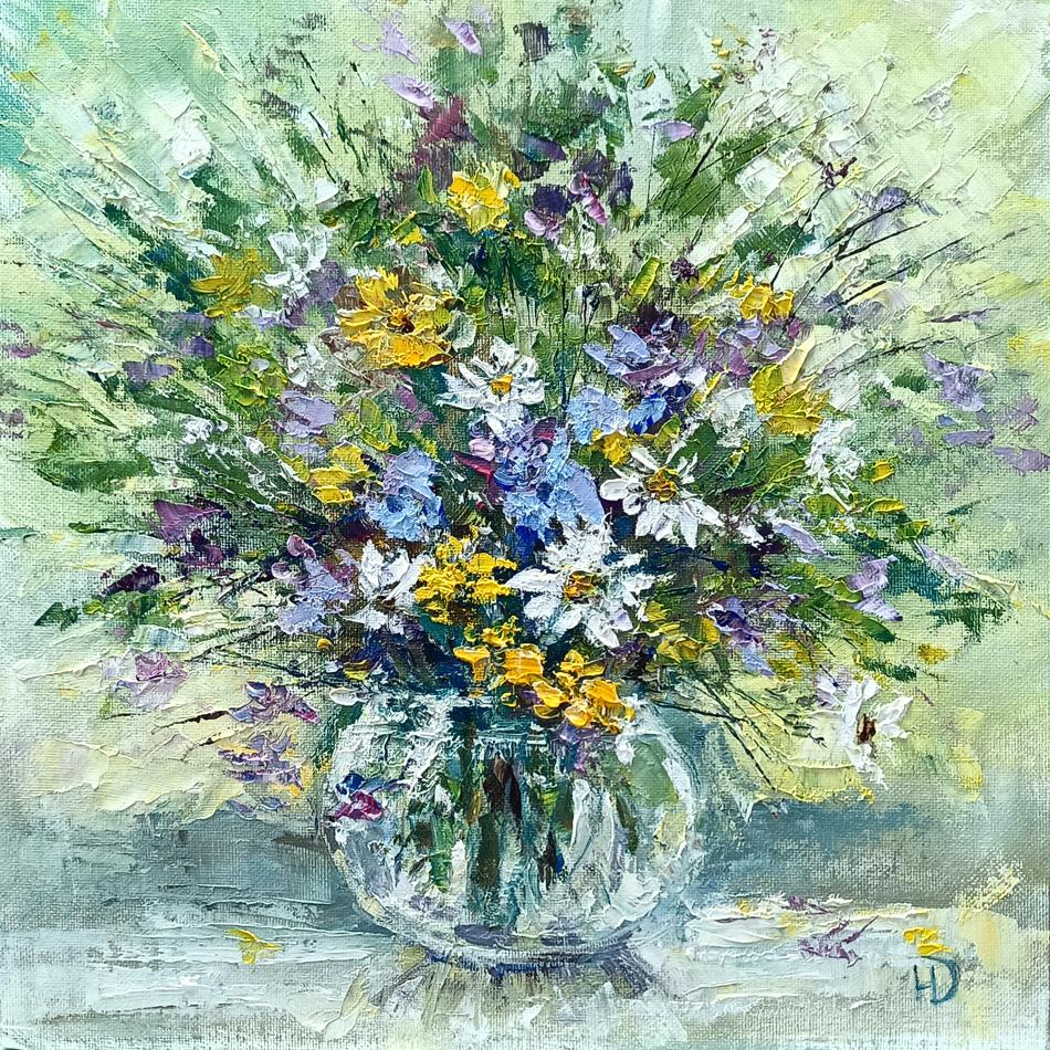 Погрузитесь в мир невидимой красоты с картиной маслом «Степные самоцветы».в цветистый луг, где роса сверкает, подобно самоцветам, а природа окружает вас своей неповторимой гармонией.